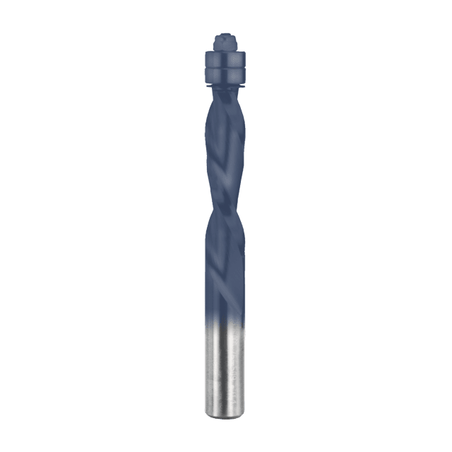 Freud’s Solid Carbide Flush Trim Spiral Bits are the best choice for your heaviest trim applications, especially in abrasive materials like melamine, particleboard or solid surface. The downshear spiral provides an extra clean top edge, even in delicate material like veneer plywood. Perfect for any flush trim or pattern application, using hand-held or table-mounted routers.