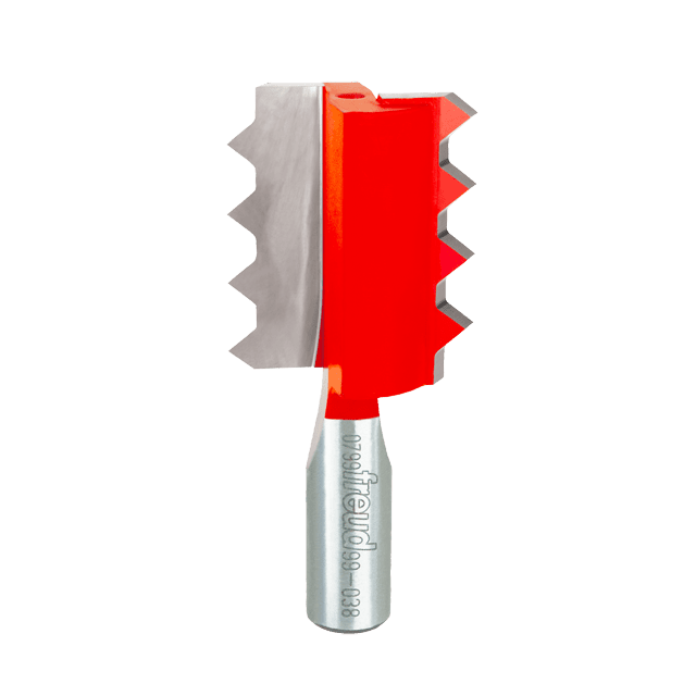 These bits are specially designed to make glue joints for raised panels. Thanks to the interlocking “V” Joints, the mating surfaces are at an angle to the finished surface of the panel, not vertical, so the dark lines like those created by standard finger joint bits are not visible. Use to rout hardwood, softwood or composites in table-mounted routers. Bit does not have to be precisely centered in the work piece. Simply adjust the bit height 3/32″ after routing the first piece, and then rout the mating piece.