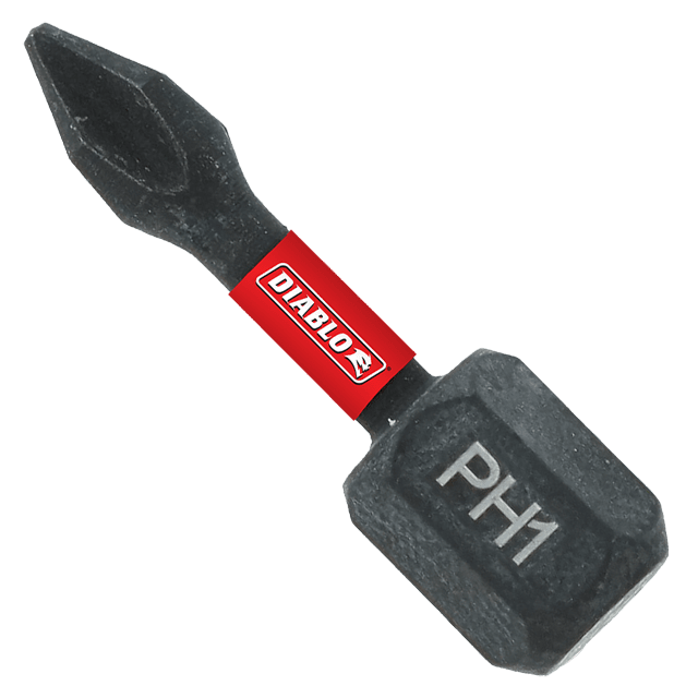 Diablo’s driver bit range of Phillips bits delivers maximum performance, extreme durability and up to 50x longer life when installing and removing fasteners. An optimized tip design provides a strong, precise grip that reduces wear, stripping and slippage. Torque Resistant Design absorbs torque for less stress at the tip when tightening and removing nuts and screws. This range is Impact Strong™, delivering increased shank stability and durability in cordless and corded impact and drill drivers.