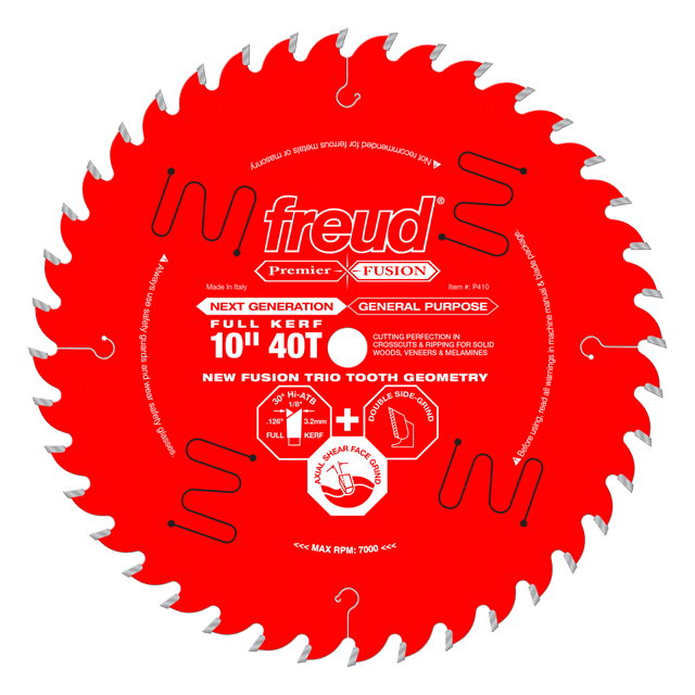 Freud’s Next Generation Premier Fusion featuring the radical new Fusion Trio Tooth Design is the most technologically advanced general purpose blade on the market! Freud has designed these unique blades with a new radical tooth design called “Fusion Trio” which combines a special grind for the top, sides, and face of each tooth. This one-of-a-kind tooth geometry includes a 30 degree Hi-ATB, a double grind design, and an Axial Shear Face Grind to produce the ultimate polished finish in ripping and crosscutting applications with minimal resistance as it glides through in the material. Whether you’re ripping or crosscutting, the next generation Premier Fusion blade is the best for flawless cuts in laminates, melamine, veneered plywoods, hardwoods, softwoods, and thick stock lumber.