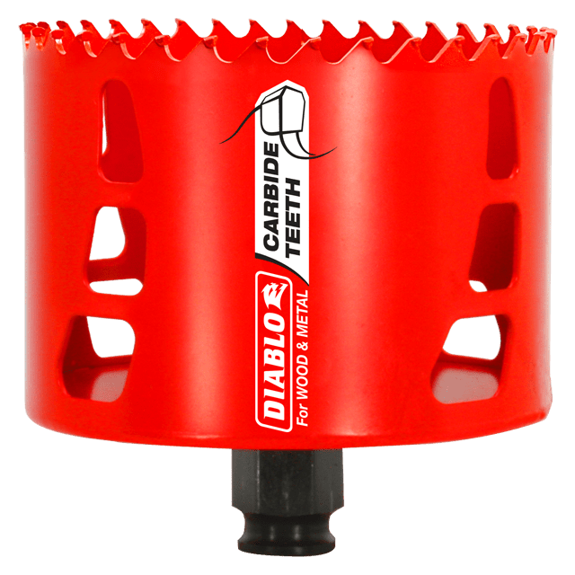 Diablo introduces the first carbide-tipped hole saws on the market to cut both wood and metal (wood, nail-embedded wood, plastic, aluminum, metal, cast iron, stainless steel and metal). Delivering 50 times longer cutting life than bi-metal, these new carbide-tipped hole saws offer faster cutting performance and increased productivity.