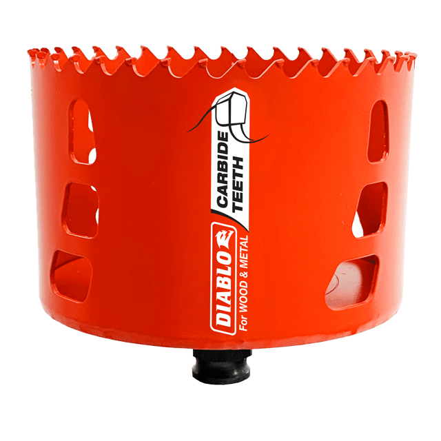 Diablo introduces the first carbide-tipped hole saws on the market to cut both wood and metal (wood, nail-embedded wood, plastic, aluminum, metal, cast iron, stainless steel and metal). Delivering 50 times longer cutting life than bi-metal, these new carbide-tipped hole saws offer faster cutting performance and increased productivity.