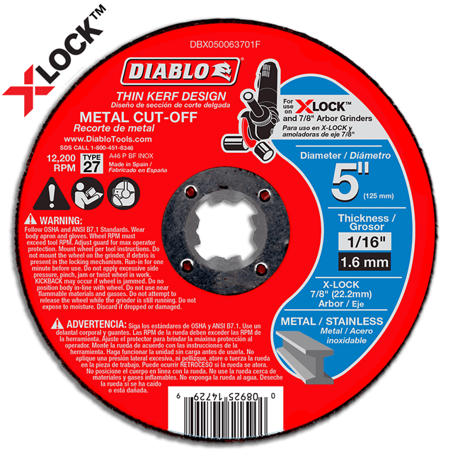 Diablo’s premium Type 27 depressed center metal cut-off discs deliver superior performance and increased productivity to allow your tool to work at its full potential. Features a premium aluminum oxide blend that produces quick cuts and offers an extra-long cutting life. Designed to be backwards compatible, these discs work with X-Lock and all 7/8 in. arbor angle grinders when cutting metal and stainless steel.